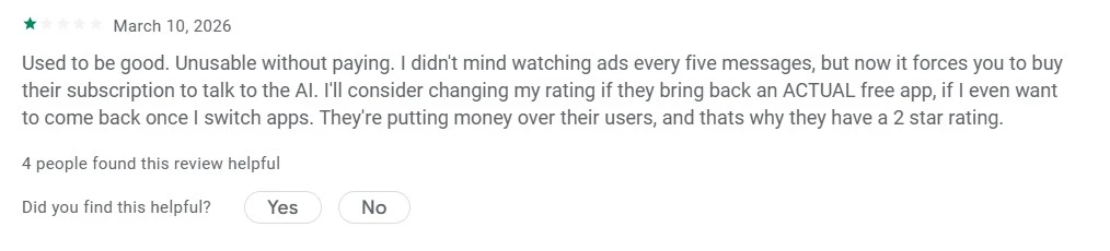 Until Chai AI prioritizes reliable support and technical features over marketing and aggressive ads, it will struggle to provide the quality and consistency that users need.