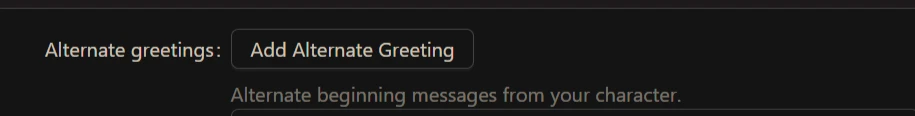- Alternate greetings — starting messages for your character to alternate between.