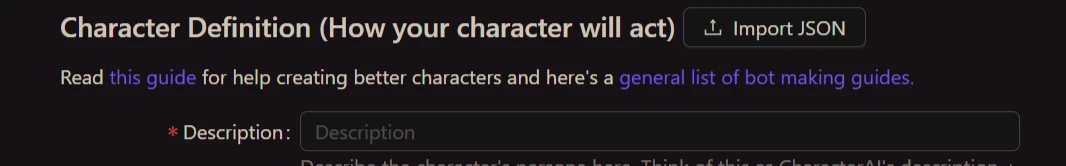 In creating your own character, Chub AI directs you to input your character details manually.