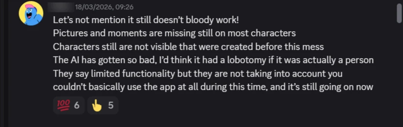 However, amid the platform's merry community, the sentiment grows: Is artificially-generated companionship worth the hassle of navigating costly system glitches?