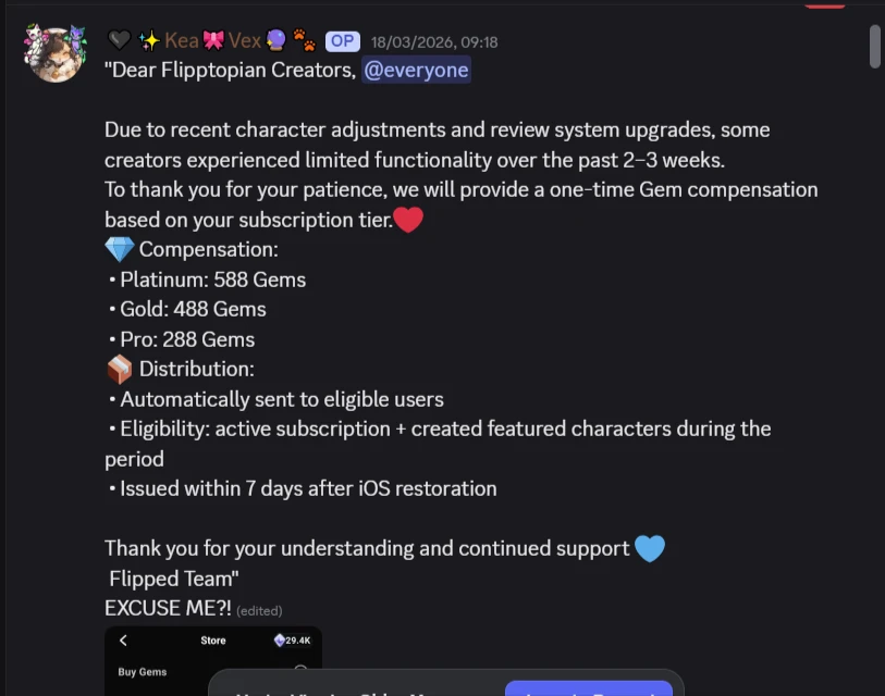 Recently, Flipped Chat's management issued a notice acknowledging the complaints and system issues users have faced and promising credit compensation to premium users.