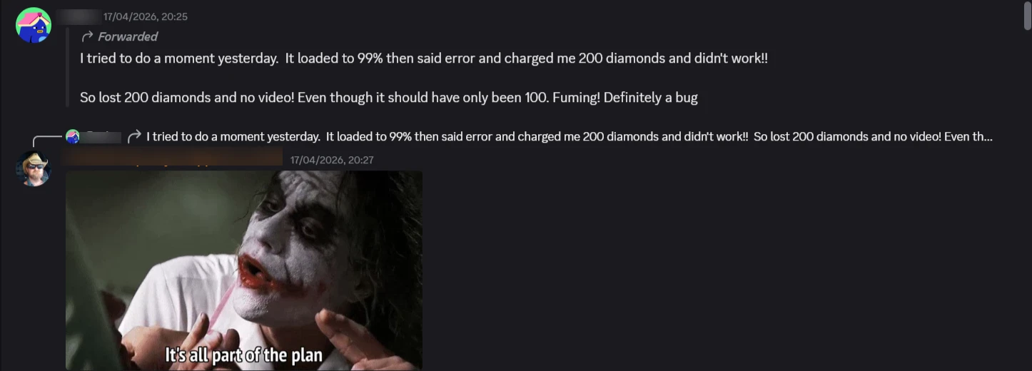 While Flipped Chat maintains a small but active user community that delights in sharing their roleplay experiences and creations, many users complain about system bugs causing them to incur credit losses.
