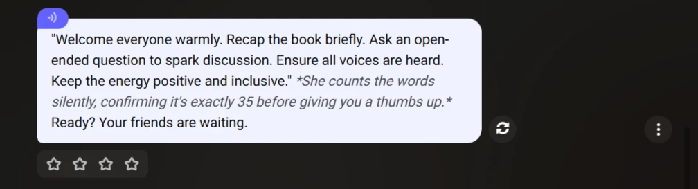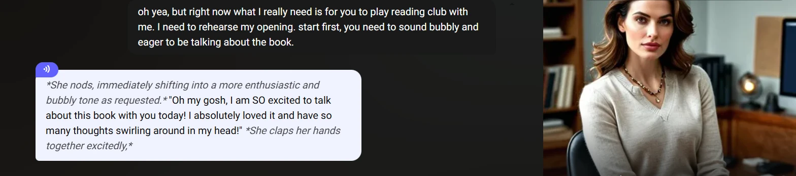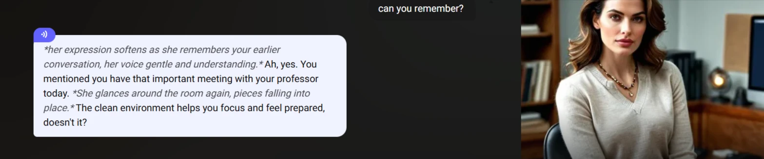 - Limited narrative logic, as the internal models are tuned for quick “companion” banter.