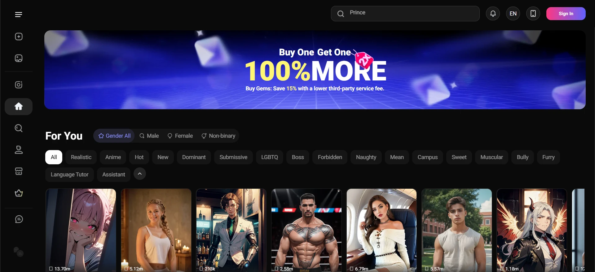 - Strong character discoverability: Up to 18 categories with dynamic search tags to narrow down user preferences.
