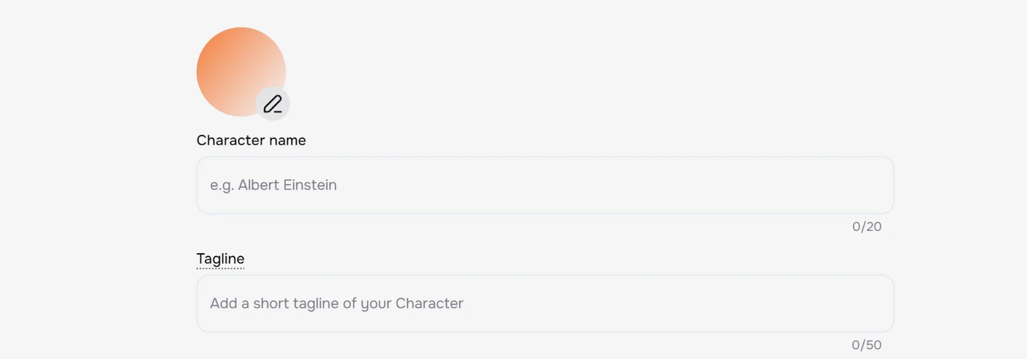 - Name: Choose a catchy and memorable name for your character. This will be how you identify them in chats and how others will find them on the platform.
