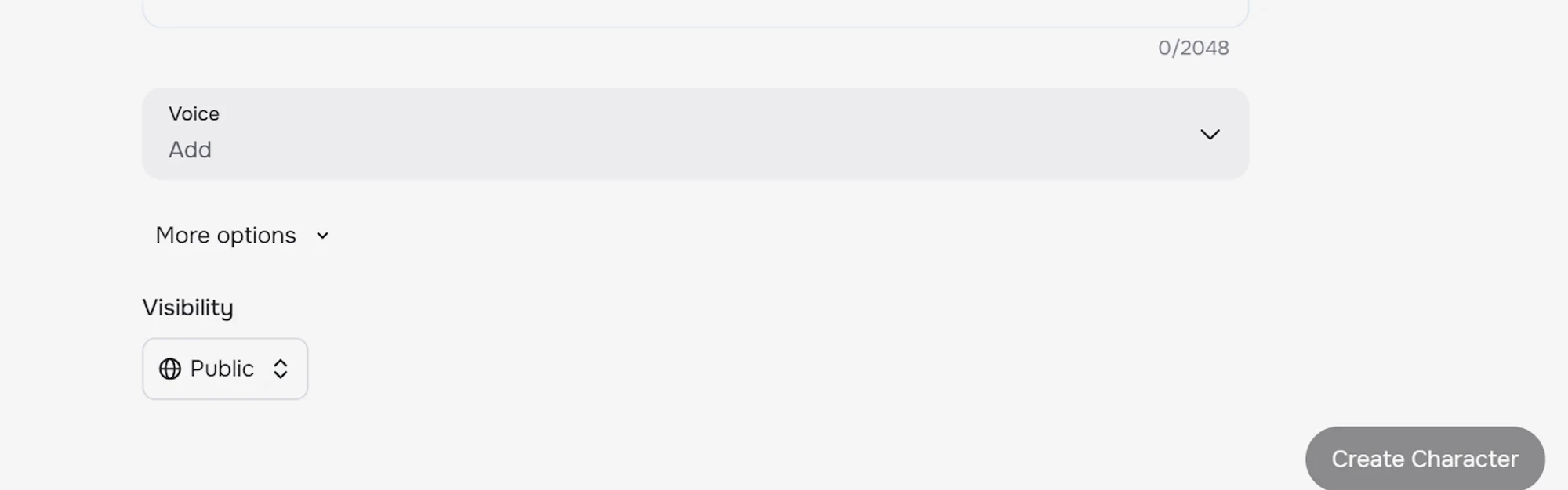 - Character Visibility: Choose whether your character will be publicly available for others to interact with or remain private for your personal use.