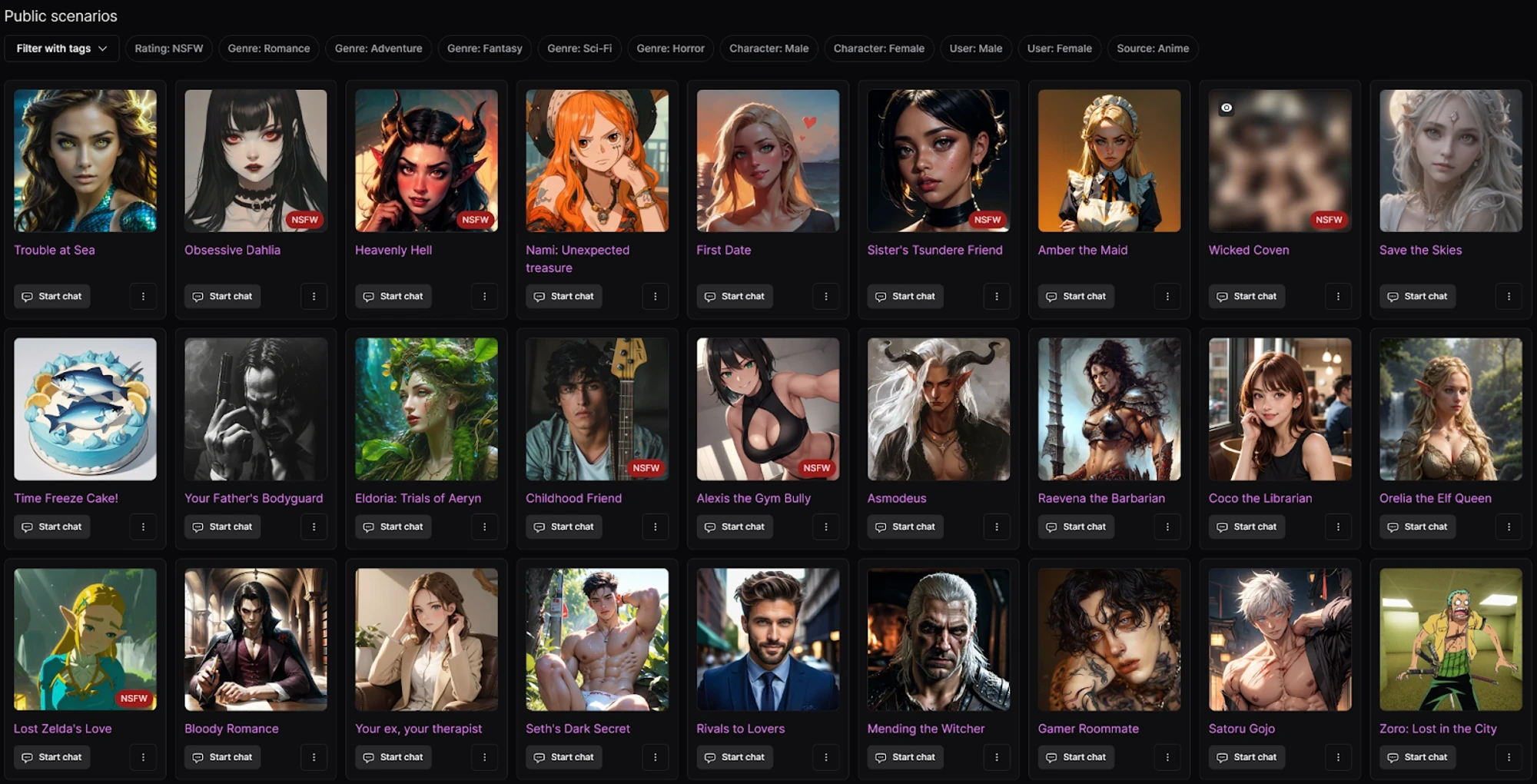For starters, we don’t limit the conversations you can have with AI characters. You can role-play in any scenario or create any story you want without filters. We know great stories often need to explore dark or controversial themes—so our models are up for anything.