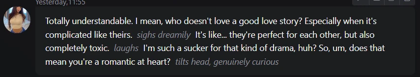 - Not ideal for: Long-form roleplay or storytelling—memory collapses around 20 messages, even on Premium plans.