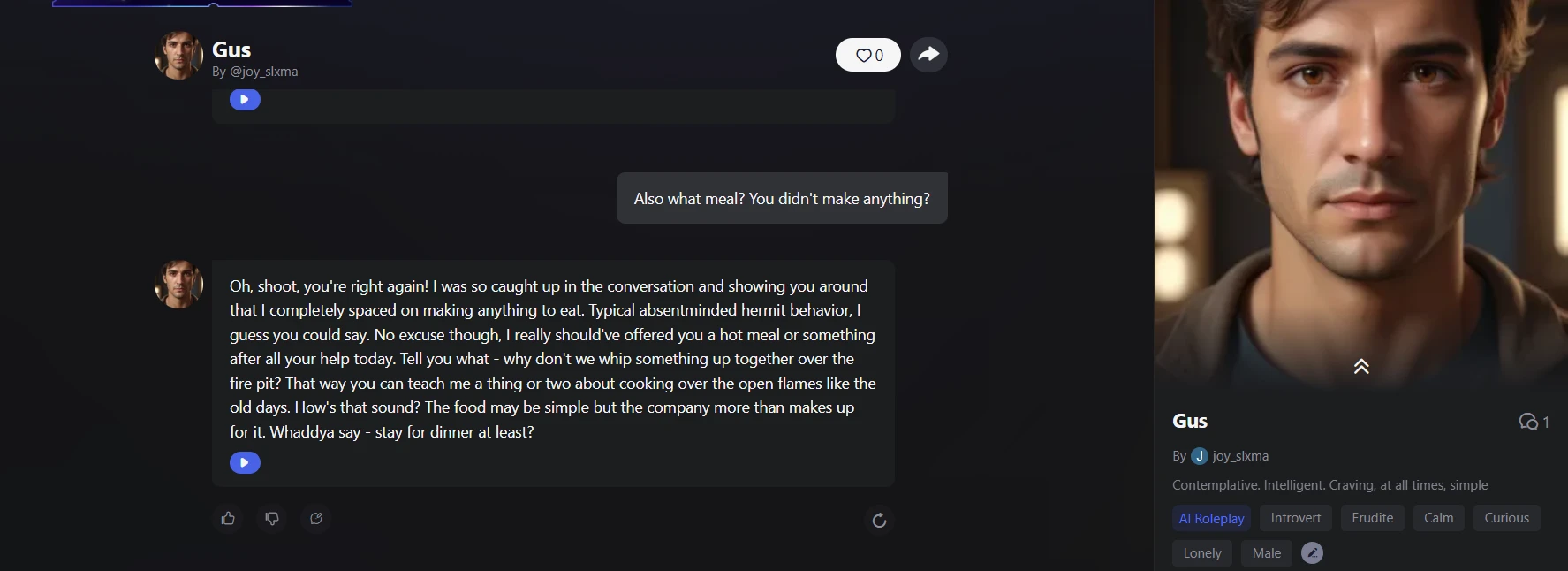 After approximately 20-25+ messages per character, we found that, despite the platform’s promising interface, the experience itself was disappointingly inconsistent.