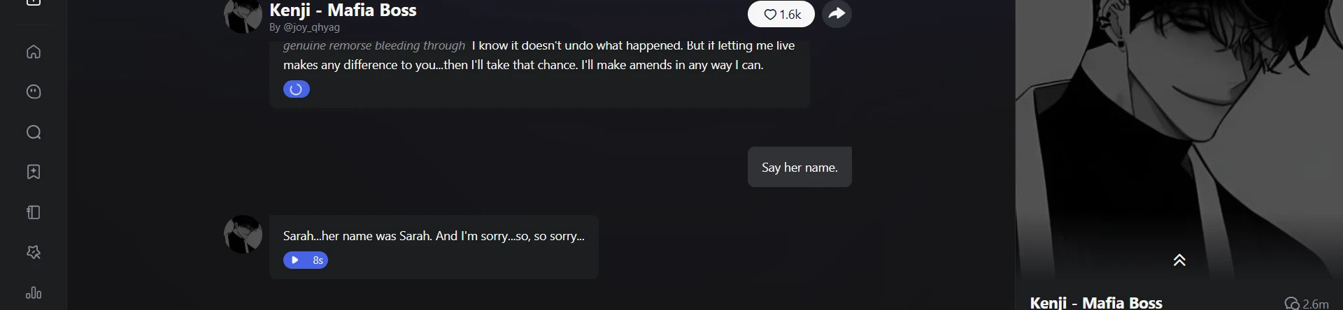 Kenji, to be fair, did have the best memory out of any of the characters we tried. Given a detail about our “sister, Sarah,” in message number eight, he retained that information throughout the chat and brought it up organically several times.