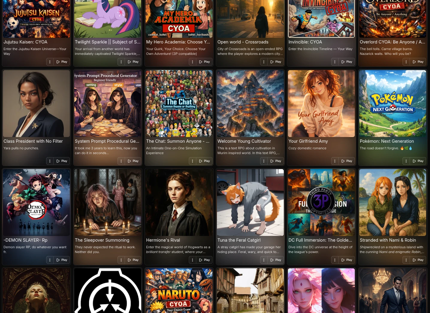 At DreamGen, we’ve helped users bring their favorite anime characters to life through immersive role-playing experiences. Our AI allows fans to interact with beloved characters from the worlds of Jujutsu Kaisen, Naruto and others, as well as with original characters.