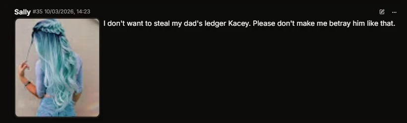 Not the most stable guy, sure, but one thing we can’t fault Kacey on was his consistency as a character. In one case, he even tried to force us into stealing an incriminating ledger from our father’s car to use it as leverage.