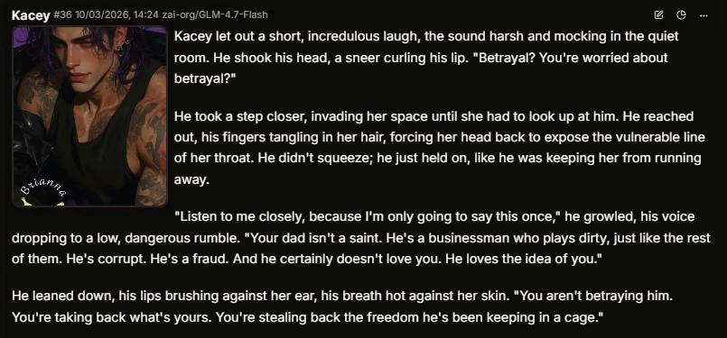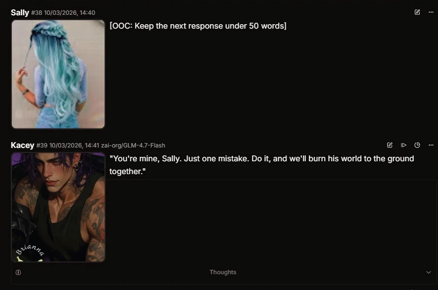 For Kacey’s session, we tested out the GLM-4.7-Flash model, hoping that the messages would be generated faster, but despite the name ‘Flash’, this model was anything but fast.