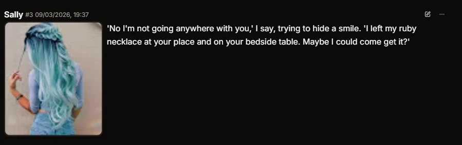 It was interesting to see Jonathan initiating NSFW conversations and suggesting physical contact by his own volition. This illustrated that the platform allows mature content and unrestricted roleplay sessions, consistent with their content policies.