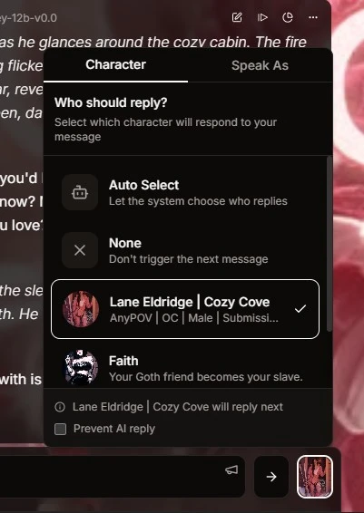 It was also interesting to see a unique feature called Impersonate Persona, where the AI can draft a message for you that you can edit before sending. This feature can come in really handy when you run into a creativity block during your roleplay session.