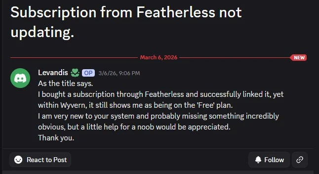 Subscription upgrades sometimes take time to reflect on WyvernChat if your subscription isn’t reflecting.